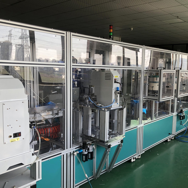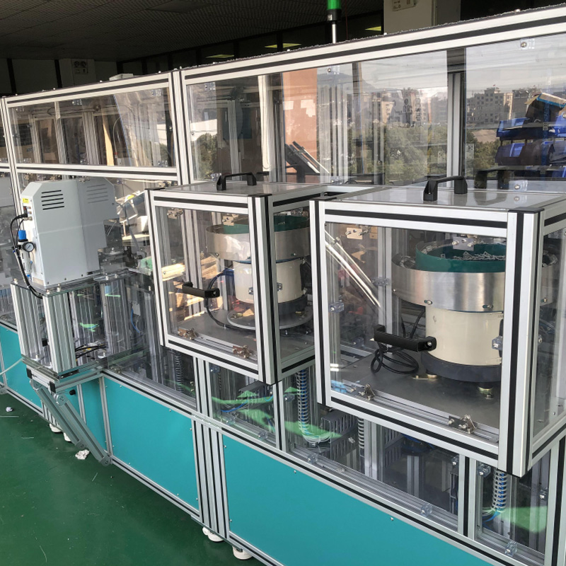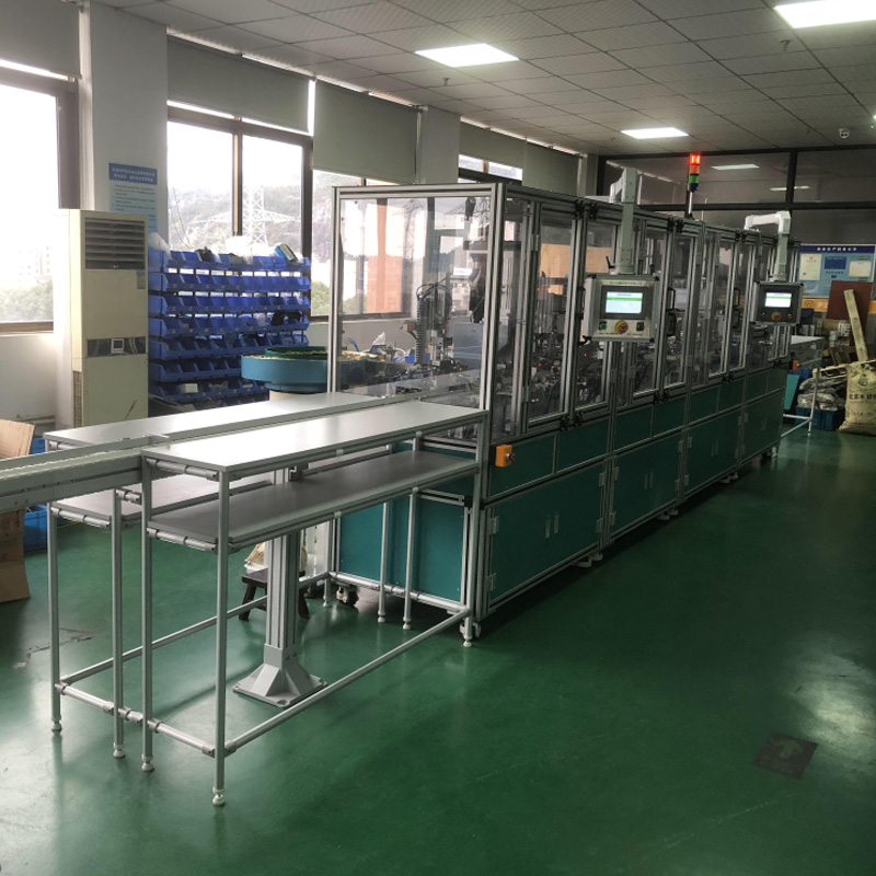 裝配移印線自動(dòng)運(yùn)行按工藝要求將殼體內(nèi)已裝好配件半成品由設(shè)備自動(dòng)完成校驗(yàn)檢測(cè),校驗(yàn)合格輸送至設(shè)備入口處由設(shè)備自動(dòng)運(yùn)行如下工序:1.自動(dòng)穿釘 2.自動(dòng)鉚釘 3.單極裝卡板 4.多極裝卡板 5.裝上封蓋 6.裝下封蓋 7.超聲波 8兩側(cè)移印 9.正面移印,全過程檢測(cè),漏裝自動(dòng)識(shí)別觸摸屏報(bào)警提示,運(yùn)行穩(wěn)定 操作簡(jiǎn)單易學(xué)。