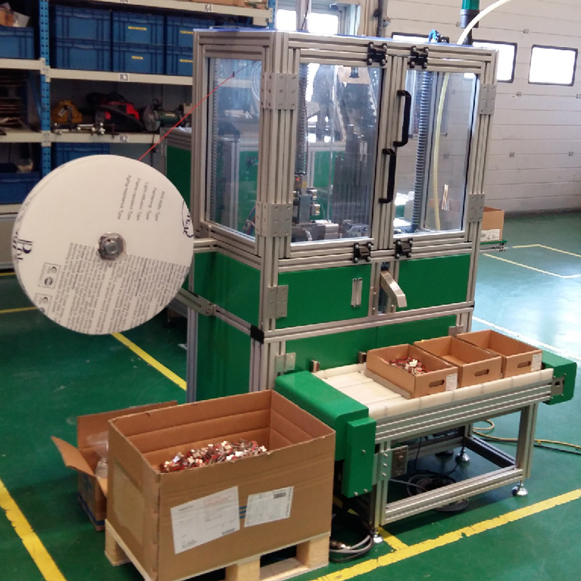 通過廣大客戶的反饋信息結(jié)合本公司多年來積累的行業(yè)經(jīng)驗(yàn),推出真正意義上全自動(dòng)滅弧室組裝生產(chǎn)線,該生產(chǎn)線由料倉(cāng)自動(dòng)補(bǔ)給系統(tǒng)+自動(dòng)加料料倉(cāng)+自動(dòng)理片系統(tǒng)+自動(dòng)篩選選滅弧片系統(tǒng)+自動(dòng)沖孔裝配系統(tǒng)+自動(dòng)換盒系統(tǒng)+成品自動(dòng)輸送系統(tǒng)組成,成品匯總到統(tǒng)一包裝處包裝,設(shè)備的運(yùn)行穩(wěn)定性及運(yùn)行效率都有較大幅度的提升,單個(gè)操作人員可以輕松管理3-5臺(tái)設(shè)備,設(shè)備運(yùn)行全程監(jiān)控并檢測(cè)以確保產(chǎn)品質(zhì)量,設(shè)備運(yùn)行穩(wěn)定操作簡(jiǎn)單易學(xué)。